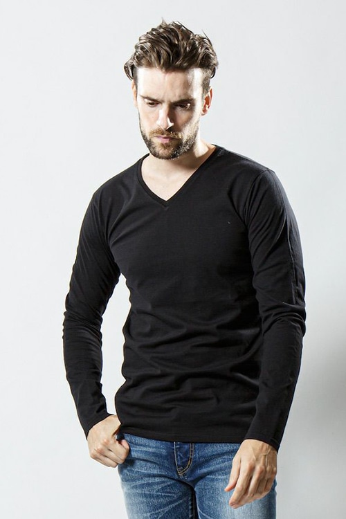 【30%OFF】kiryuyrik ナポレオンVネックTシャツ Black KX-HT16-050