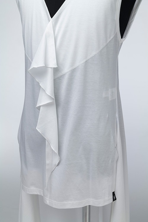 SUGIZOが2022,8,26-27 LUNA SEA復活祭の為に作ったフリルノースリーブ。サルエルパンツとのコーディネイトを前提とし絶妙な丈に仕上げた衣装アイテム。