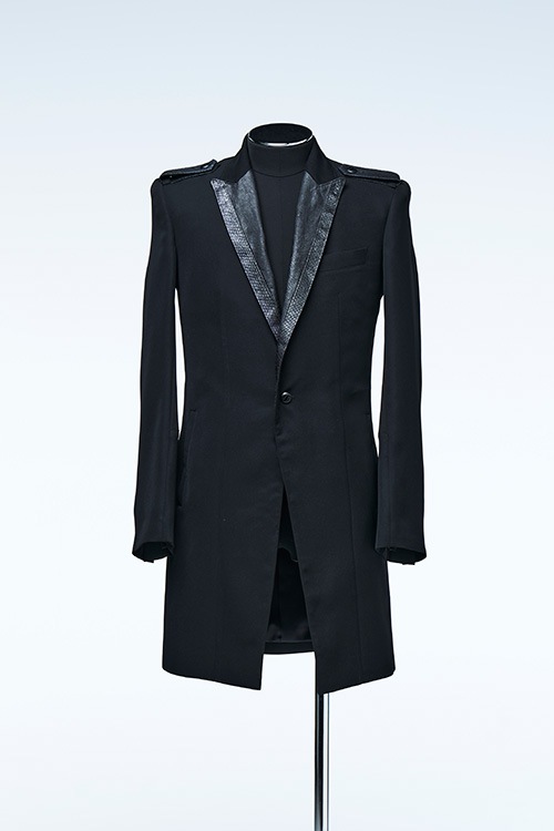 鮭、鰤の2つのFishレザーをラペル、肩章に使用。ロングピークドJacket