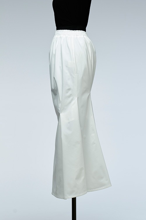 膝下からのフレアと左右脇のスリットで着用時に動きがでます。