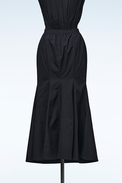 ウエストにゴムシャーリングのイージーマーメードスカート。