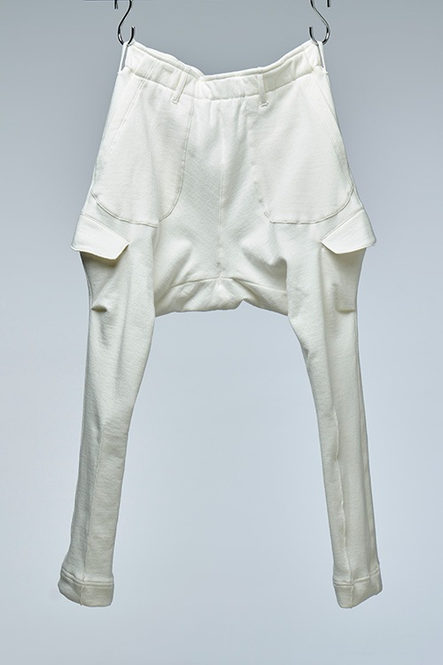 デザインウエストギャザーのサルエルシルエットパンツ。