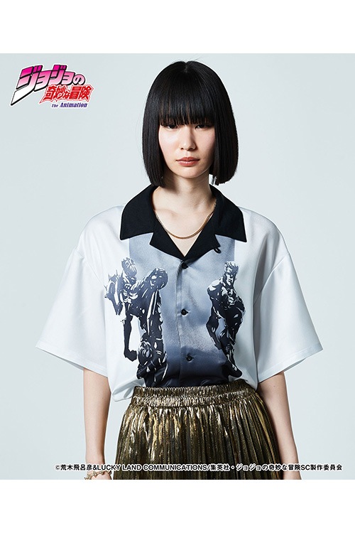 TVアニメ『ジョジョの奇妙な冒険 スターダストクルセイダース』とglambがコラボレーション。気高い騎士道精神を持つポルナレフの姿をオープンカラーシャツに乗せたJean Pierre Polnareff Shirt。