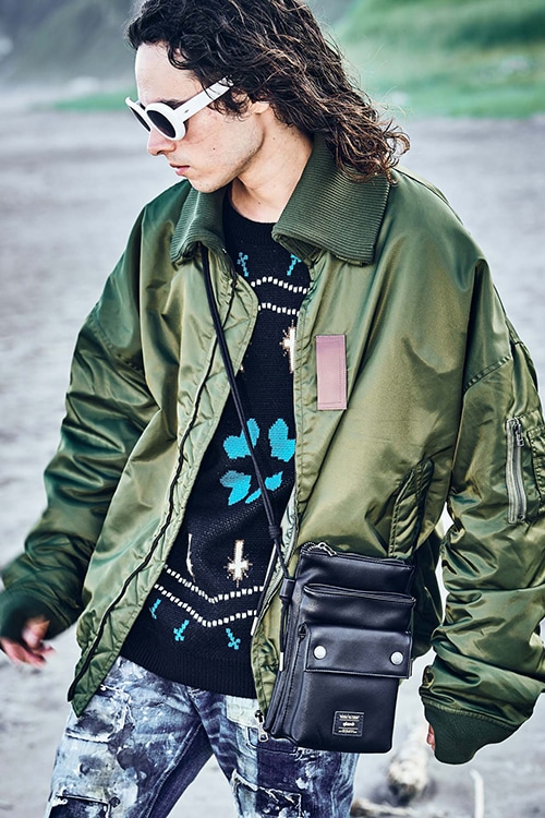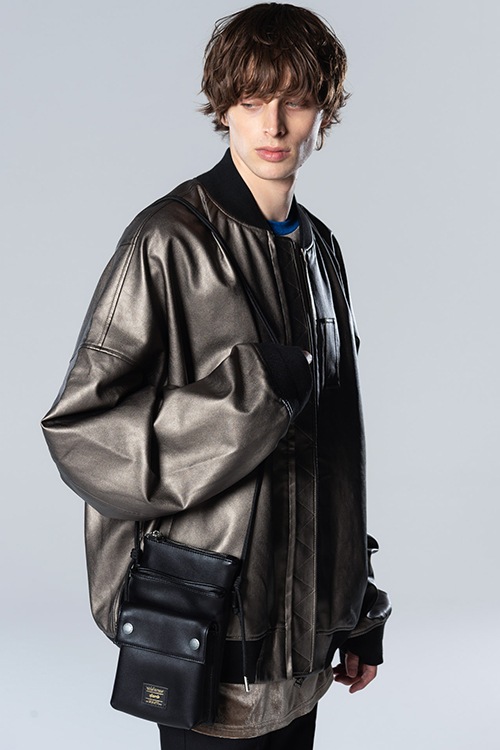 ストリートアイテムには欠かせないサコッシュに高い機能性を提案するSynth Leather Sacoche。テキスタイルに選んだのは、耐久性に優れたPUレザー。コンパクトなフォルムながら、3ポケットをボディに配することで高い収納力を実現しています。留め口は、ブランドロゴを配したスナップボタン式のフロントポケット、マグネット式のミドルポケット、ファスナー式のバックポケットとそれぞれ異なるモードなデザイン。