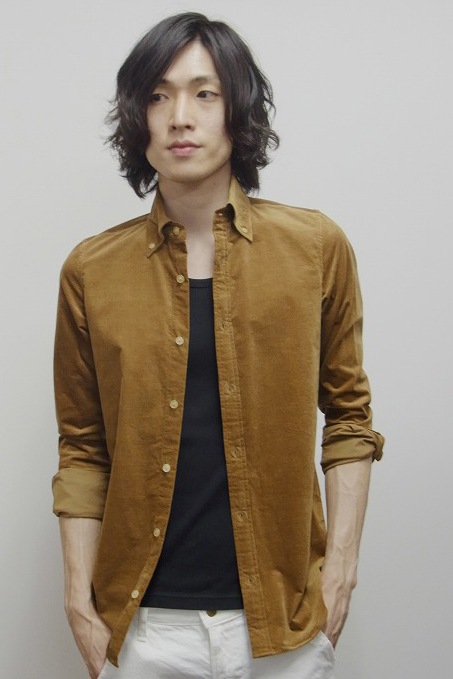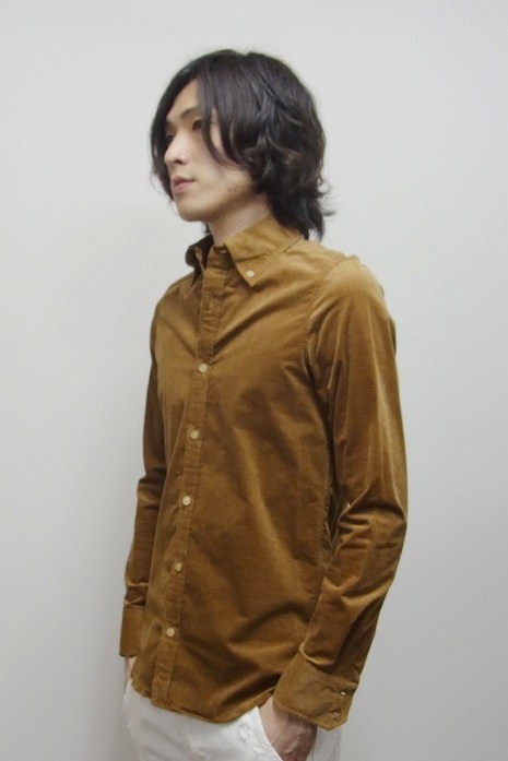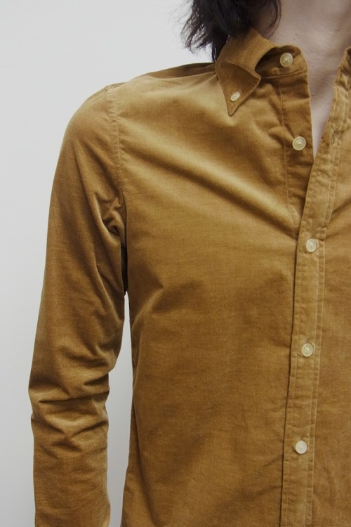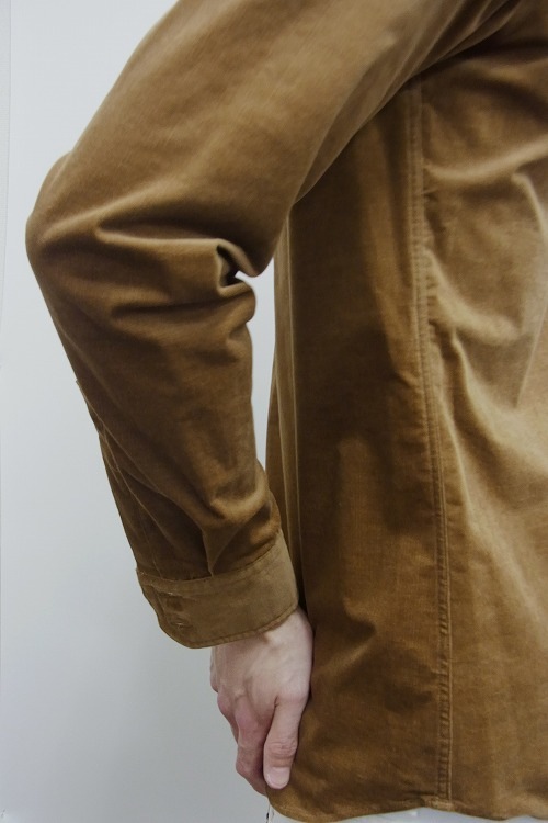 適度なハリと光沢感を持ったラグジュアリーな雰囲気のコーデュロイBDシャツ。
